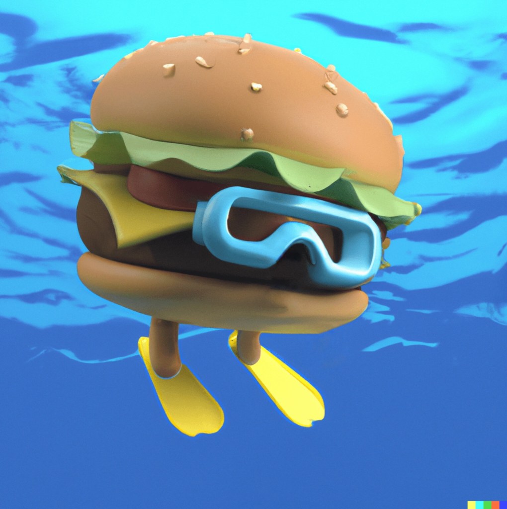 Prompt: A hamburger scuba diving